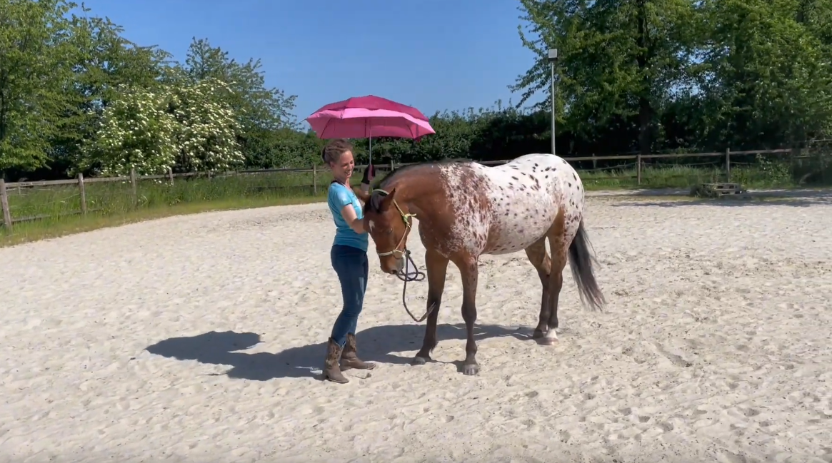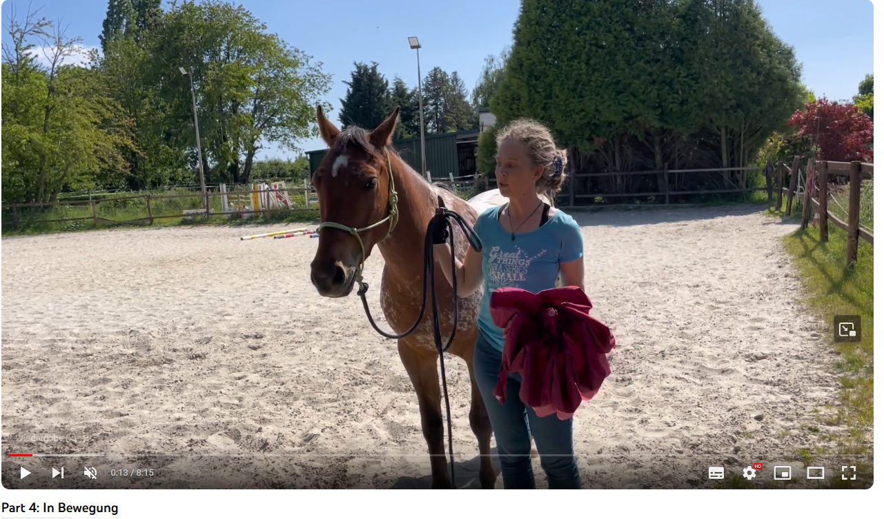 In den Hands-on-Videos erkläre ich dir Schritt für Schritt, wie du deinem Pferd jeden Gegenstand erklären kannst. Je besser du erklärst, desto alltäglicher wird der jeweilige Schreckgegenstand. Detailliert und absolut verständlich.